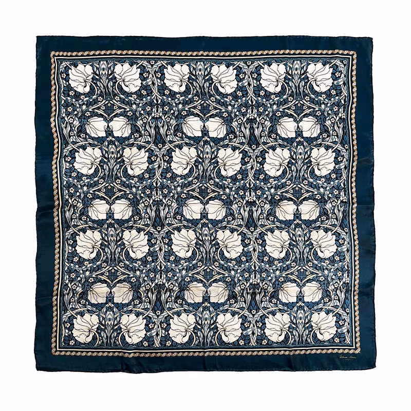 Tilfør antrekket ditt et sofistikert, kunstnerisk preg med dette luksuriøse silkeskjerfet i William Morris’ Pimpernelblå-motiv. Det elegante, botanisk inspirerte mønsteret i kjølige blå nyanser skaper et tidløst og iøynefallende uttrykk. Den myke silken faller vakkert, noe som gjør skjerfet perfekt til både hverdags og festlige anledninger.