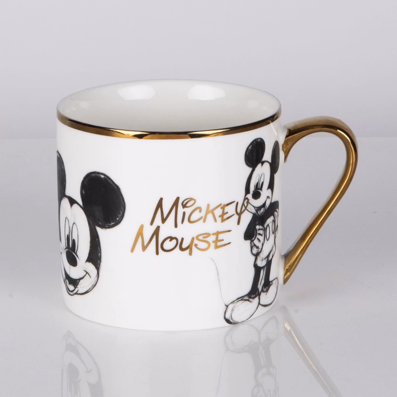 Et vakkert, klassisk Mikke-krus med blyantillustrasjon, forgylt håndtak og skjulte detaljer med «Mikke Mus» på innsiden. Komplett med svart og gullfoliert eske, er dette en flott gave til en elsker av Disneys fantastiske figurer. En del av et samlerkolleksjon med favoritter fra Askepott til Minni.