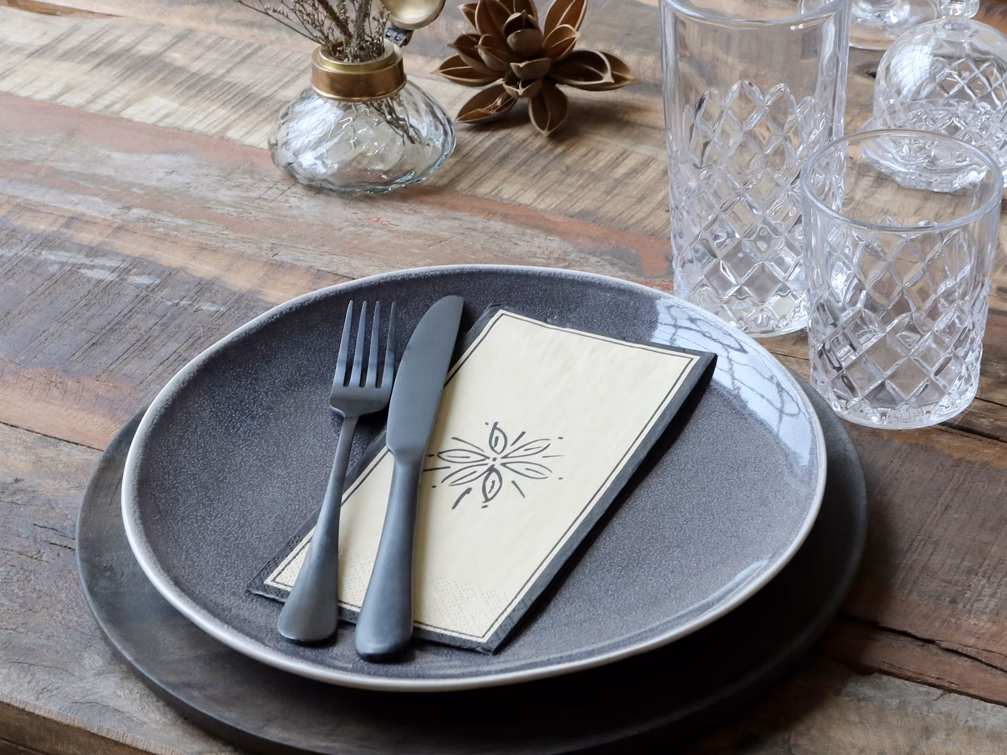 Fin og nøytral serviett i størrelsen 20x10cm. Kommer i to farger, honning og fransk grå.