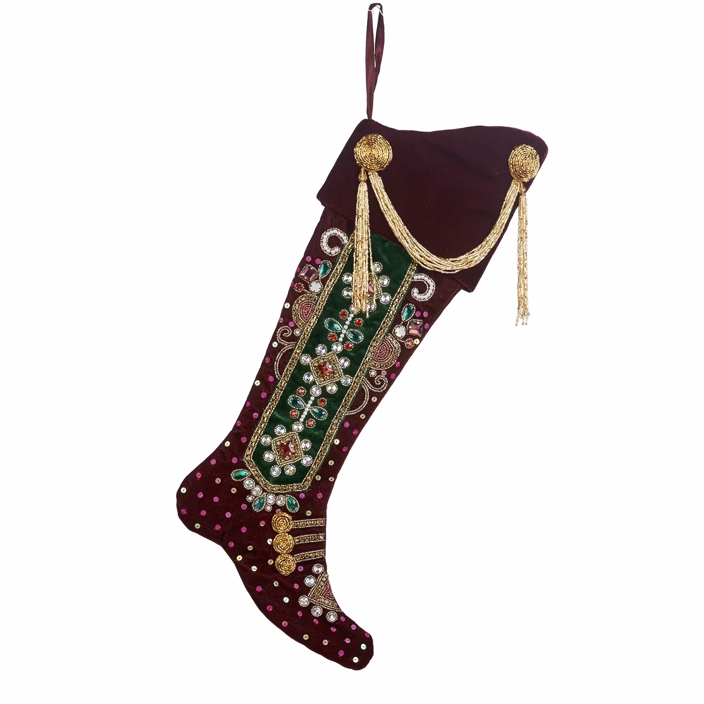 Har du julestrømpe? Trenger du en til? Ja - for denne har du aldri sett før, den er så vakkert utført. Med de lekre fargede perler og paljetter,  er den riktig så staselig med sine 62cm. Vi har klart å skaffe kun 2 av denne, så om du vil sikre deg en så er det nå!