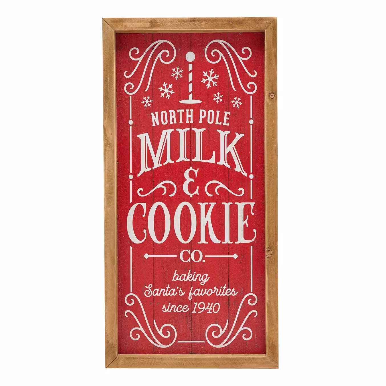 Gi hjemmet ditt et festlig preg med denne sjarmerende røde veggplaketten. Perfekt til jul, med «North Pole Milk & Cookie Co.» trykt i en vintage-stil. Kan også benyttes som pyntefat på et julepyntet bord eller til lørdagskosen. Egner seg ikke til å bære noe i, kun til pynt.