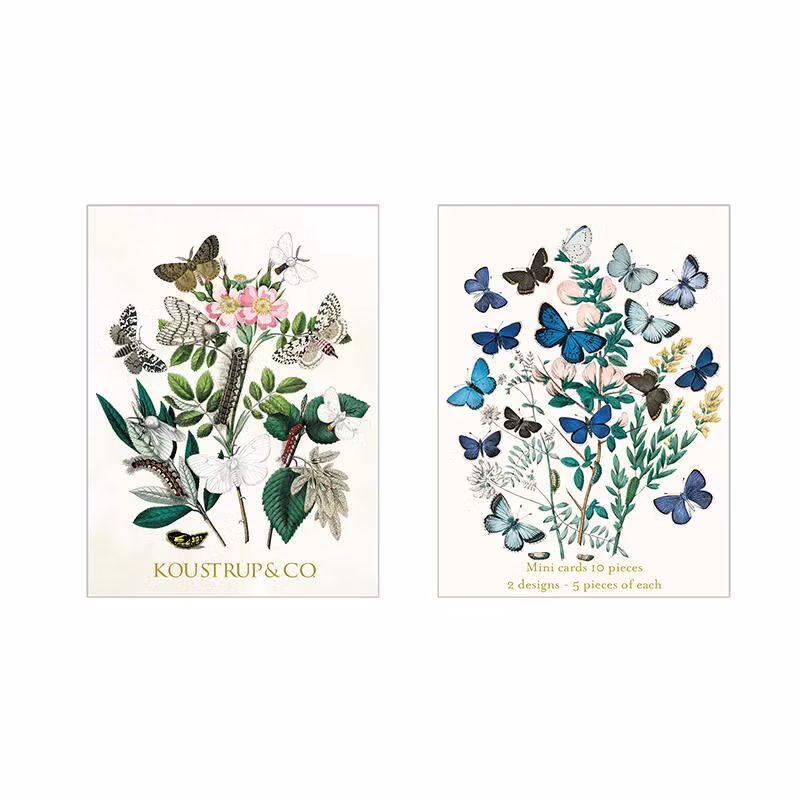 Her får du flotte dekorerte minikort å skrive hilsener på. Kortene kan bl.a. brukes som til-og-fra-merker for gaver og blomsterbuketter. Du kan også bruke kortene til små meldinger, skrive minneverdige og/eller meningsfulle ord til andre eller deg selv og henge dem på kjøleskapet eller oppslagstavlen, hvor de pynter opp  fint.
