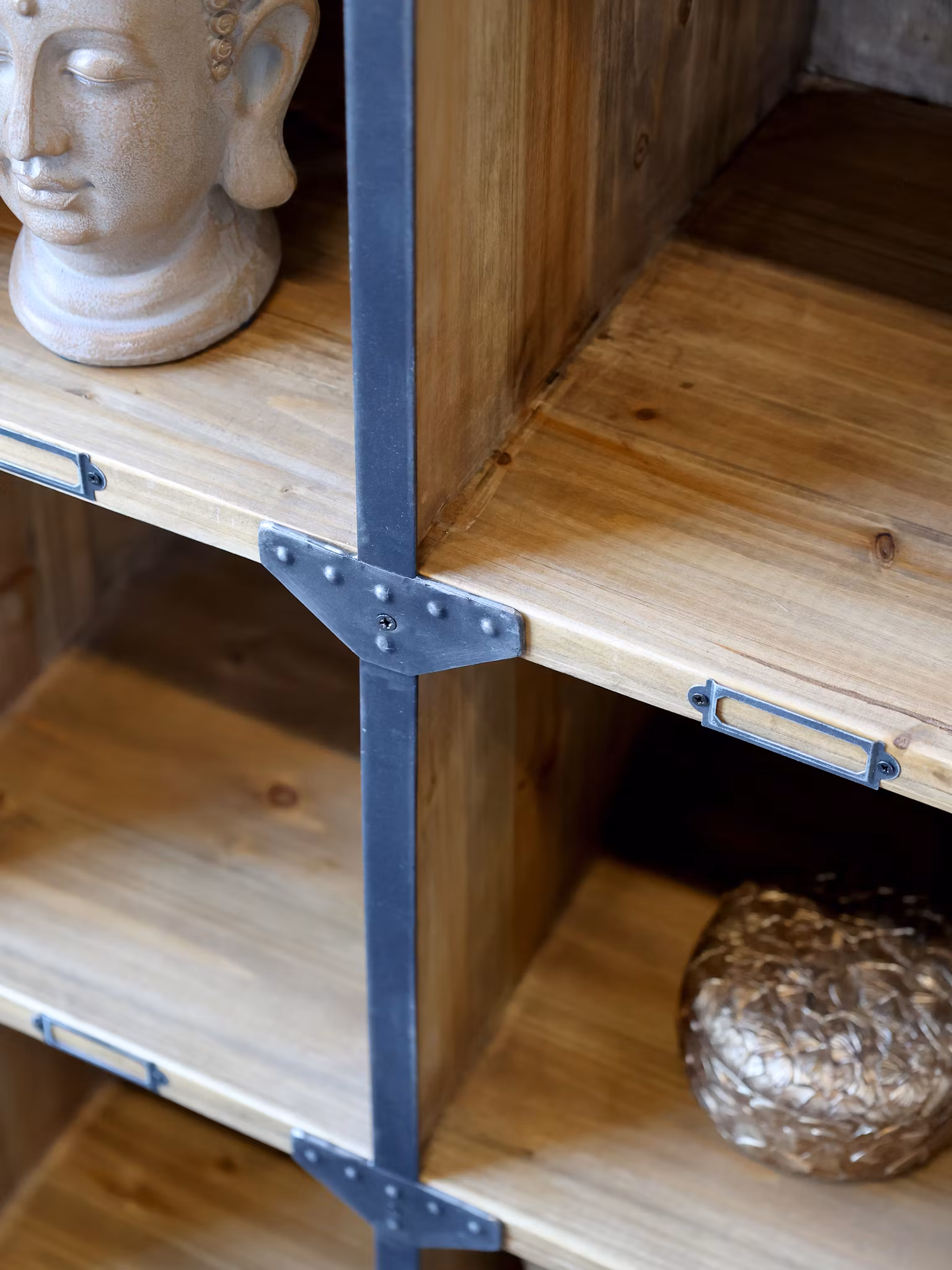 Nydelig reol med 16 like rom. Den har nydelig utførte detaljer og er et blikkfang i rommet.