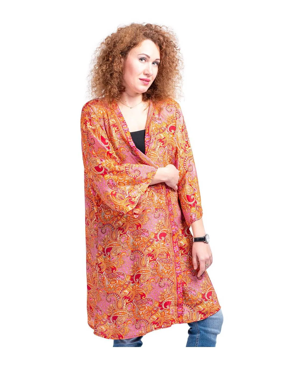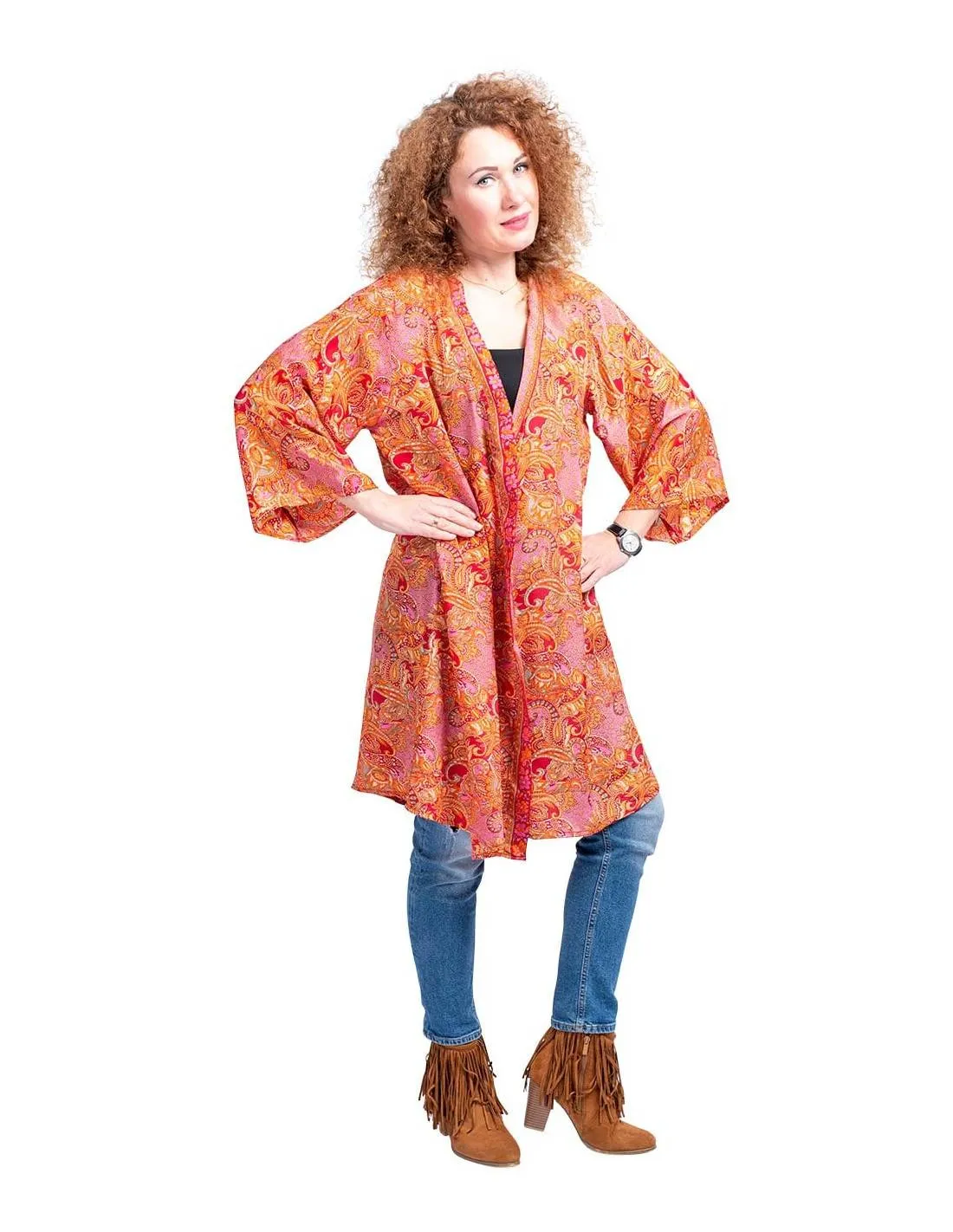 Kimono midi oransje i silke