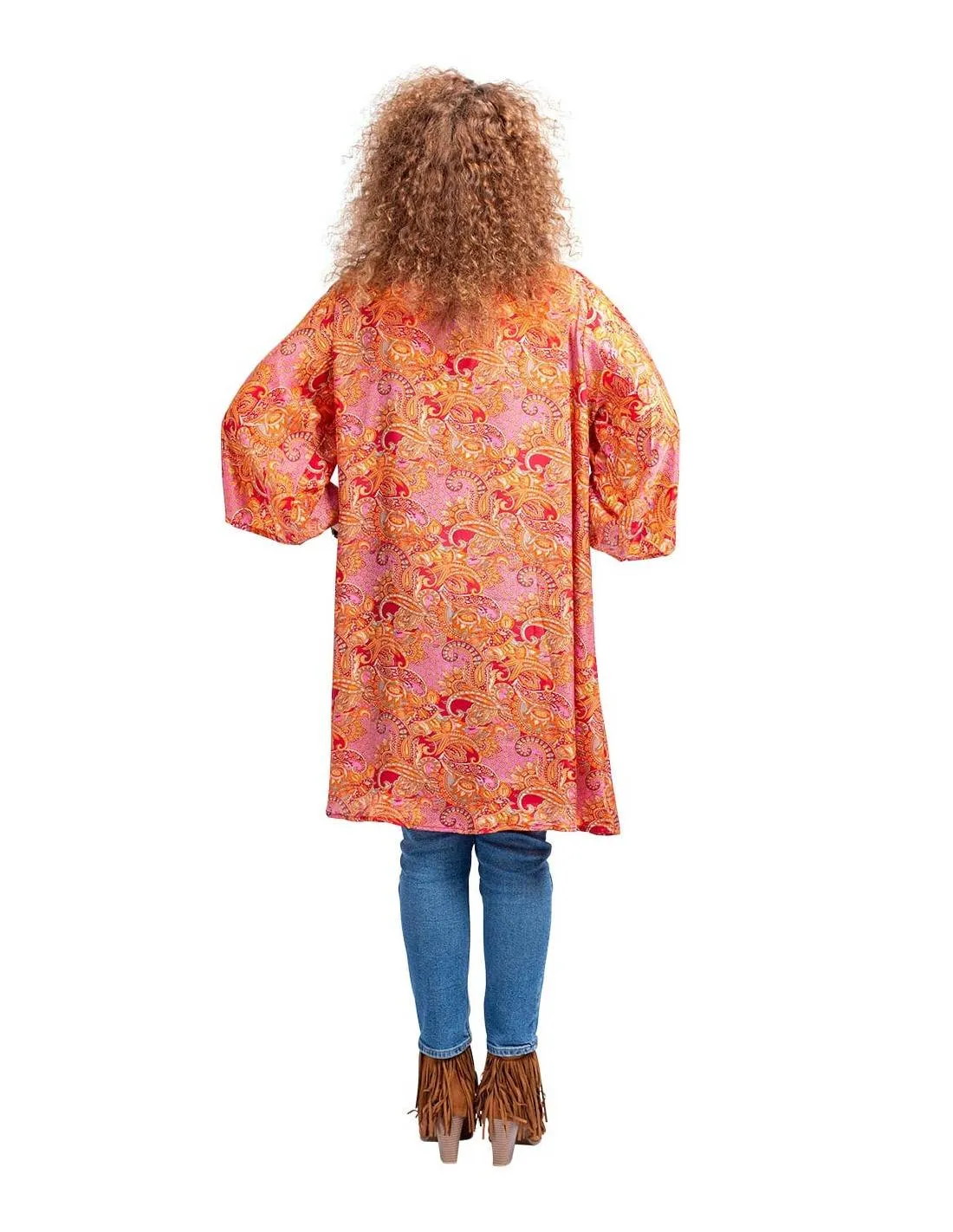 Trykt silkekimono i oransje toner