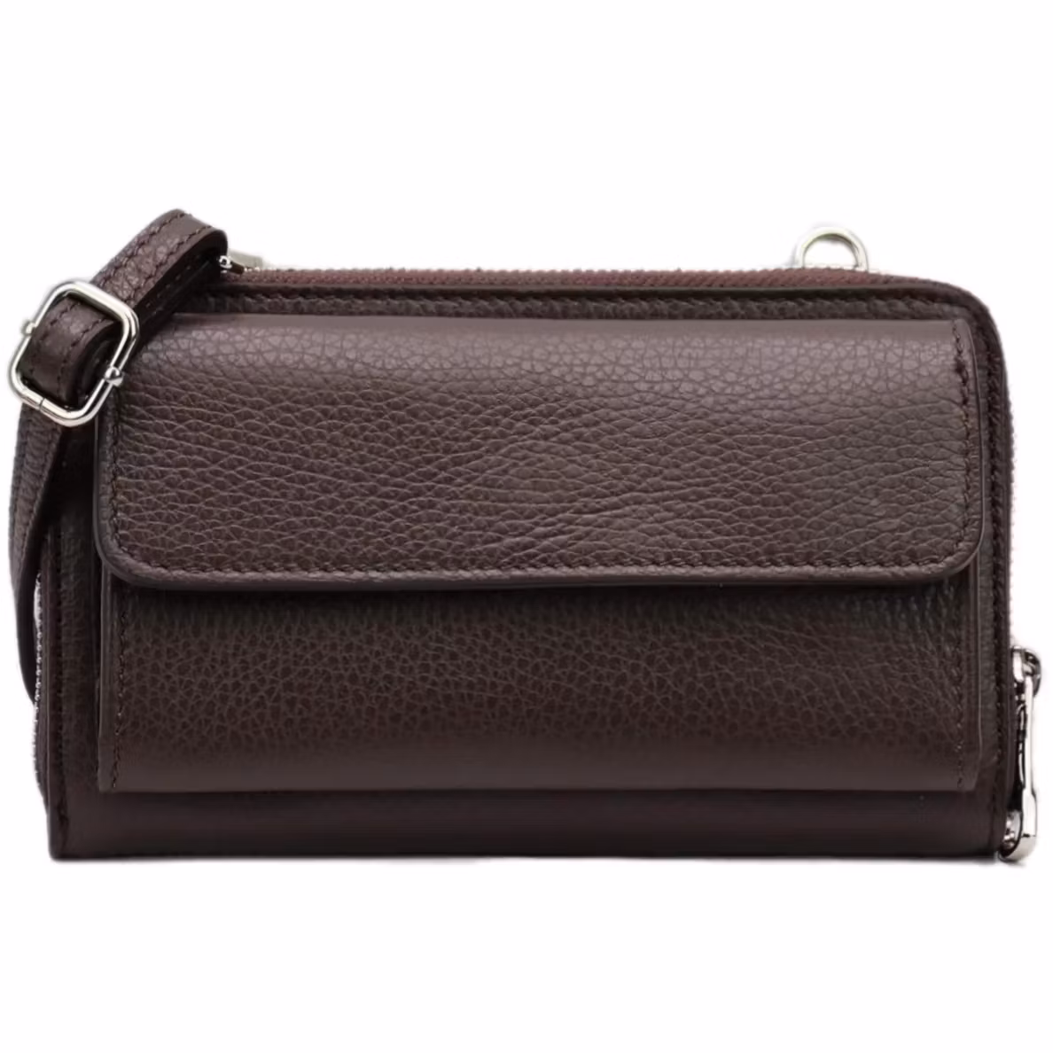 En lekker liten veske, Carmen er en nyhet hos Bellissima. Noen kaller den kanskje en lommebok med plass til mobiltelefon, men en fellesbetegnelse som clutch er det hvertfall, og i ekte skinn. Mobillomme foran med magnetisk lukking, passer til mobiltelefoner opptil 6,7 tommer (mobillengde 16,5 cm.). Lommeboken har et hovedrom med glidelås.